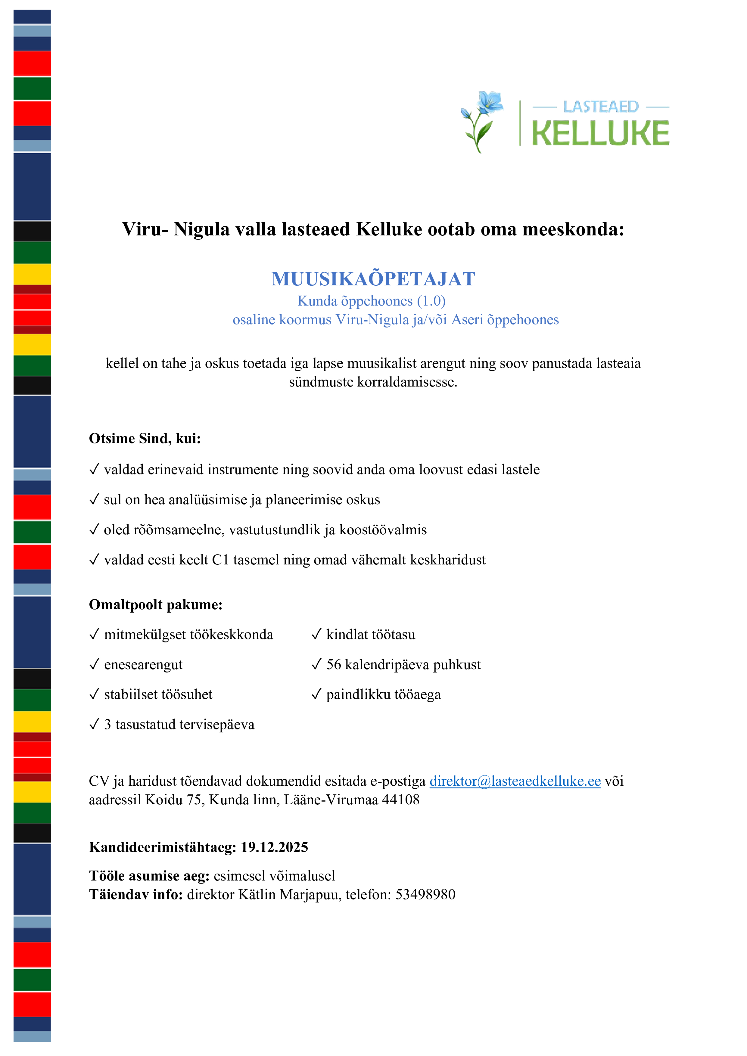 Pakume tööd muusikaõpetajale Kundas, Viru-Nigulas, Aseris!